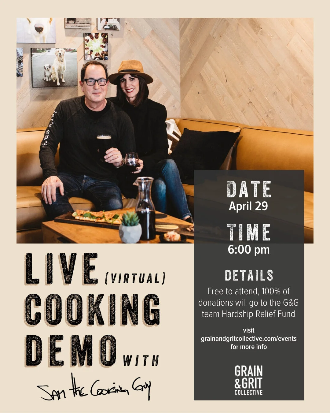 THANK YOU for joining us online for our virtual live cooking demo with Sam the Cooking Guy. All of the donations raised during the event is going towards the Grain and Grit Hardship Relief Fund.